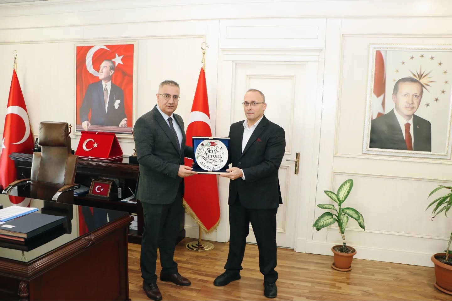 Samimi bir ortamda gerçekleşen ziyaret, iyi dileklerin iletilmesi ve günün anısına çekilen hatıra fotoğrafı ile sona erdi.