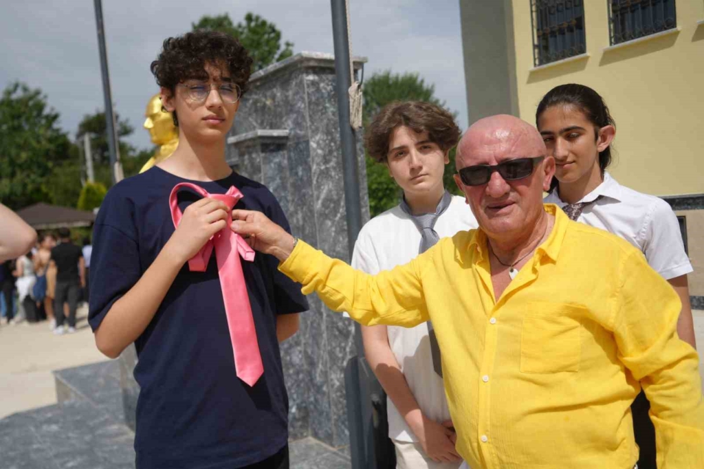 Kocaeli’de 2023-2024 eğitim öğretim yılının sona ermesiyle öğrenciler karne heyecanı yaşadı. Kartepe Ali Fuat Başgil Sosyal Bilimler Lisesinde düzenlenen törenle gençler karnelerini alırken, Kocaeli’de şık ve renkli giyim tarzıyla tanınan 68 yaşındaki Ergül Yazıcı da öğrencilere sürpriz yaptı. Yazıcı, başarılı öğrencilere renkli kravatlar ve çiçek hediye etti.