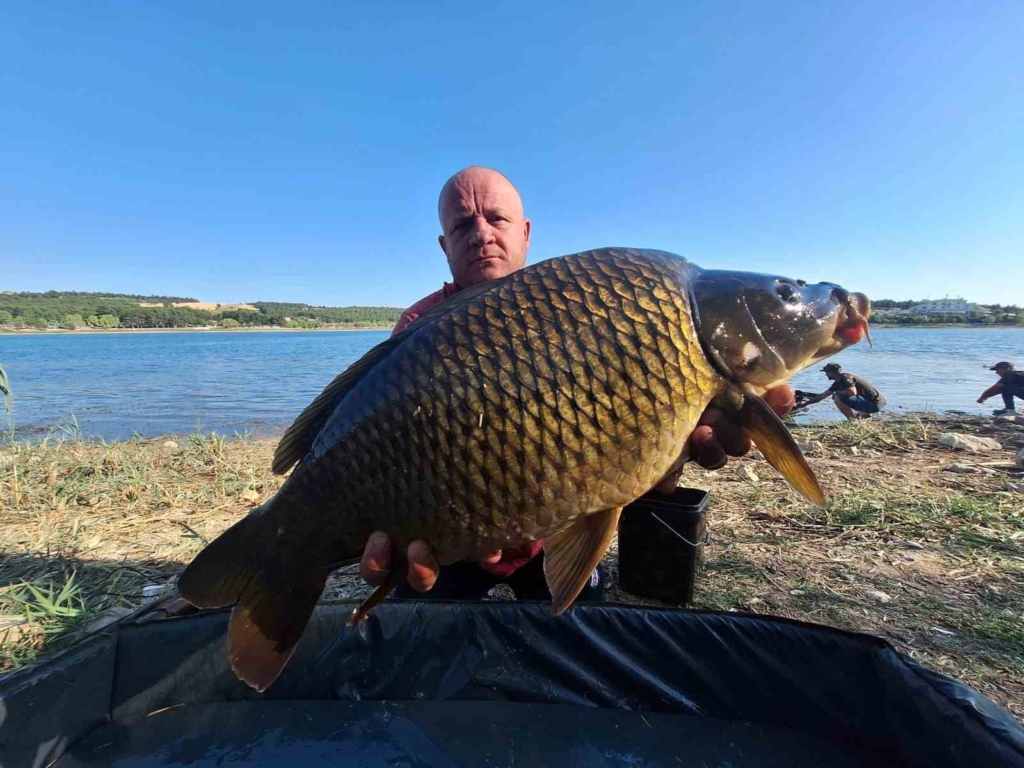 13 kiloluk dev pullu sazanı tutan Kerim Çelikbilek son olarak balıkları göletten nasıl çıkardıklarını anlatarak, “Bizim göletimizde ot fazla olduğu için burada oltamıza gelen balığı botla 100-150 metre ilerden alıyoruz. Çünkü öbür türlü kıyıya getirmeye kalktığın zaman misina kopuyor, kanca balığın ağzında kalıp ona zarar verebiliyor. O yüzden biz her vuran balığa 2 kilo da olsa botla gidip uzaktan alıyoruz” dedi.