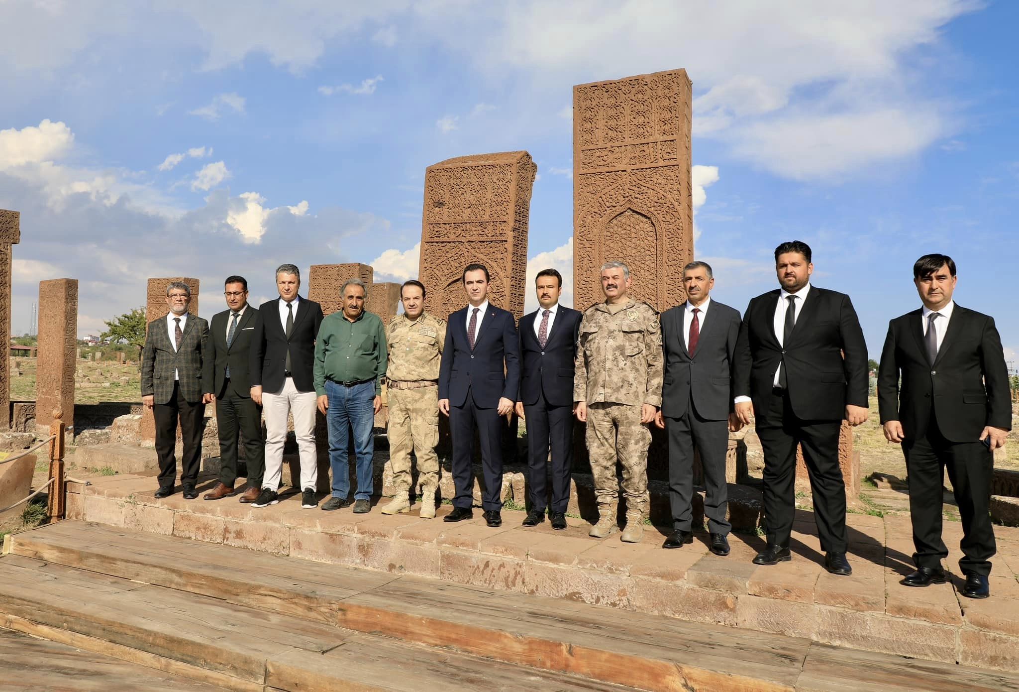 Vali Karakaya, tarihi mezar taşlarının önünde hatıra fotoğrafı çekinerek, dua ettikten sonra Ahlat ilçesinden ayrıldı.