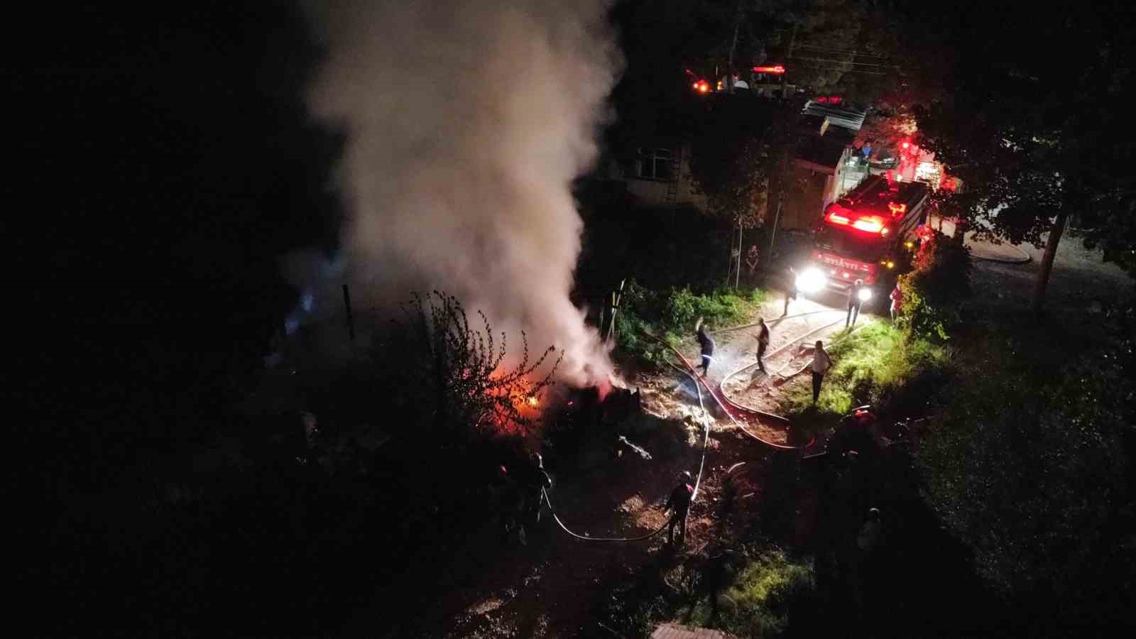 Sakarya’nın Akyazı ilçesinde gece saatlerinde alevlere teslim olan baraka kullanılamaz hale geldi.
