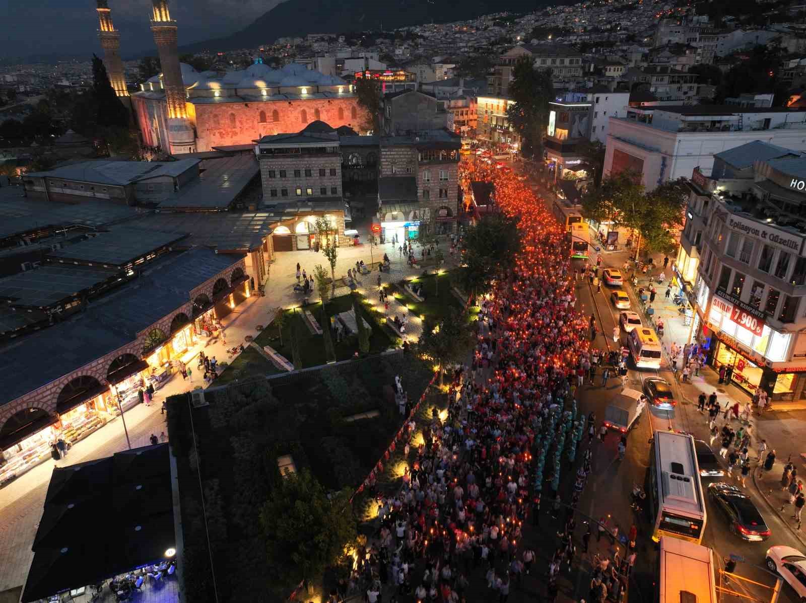 30 Ağustos Zafer Bayramı’nın 102. yıl dönümü, Bursa Büyükşehir Belediyesi tarafından düzenlenen fener alayına binlerce kişinin katılımıyla muhteşem görüntüler eşliğinde kutlandı. Tarihi Belediye Binası önünde bir araya gelerek Atatürk Caddesi’ni baştan sona dolduran Bursalılar, ‘Hepimizin Zaferi’ olan 30 Ağustos heyecanını unutamayacakları bir atmosferde yaşadı. Yürüyüş sonrasında Türk müziğinin güçlü sesi Nilüfer’in konseriyle coşku doruğa çıktı.