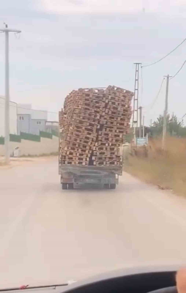 Nilüfer ilçesi Başköy Mahallesi’nde kamyonet araca yükledikleri paletler ile tehlikeli şekilde seyretti. Yolda seyreden bazı sürücüler tehlikeli şekilde seyreden kamyonet sürücüsünün uyardı. Bir süre daha bu şekilde giden sürücü, ara sokaklara girerek gözden kayboldu.