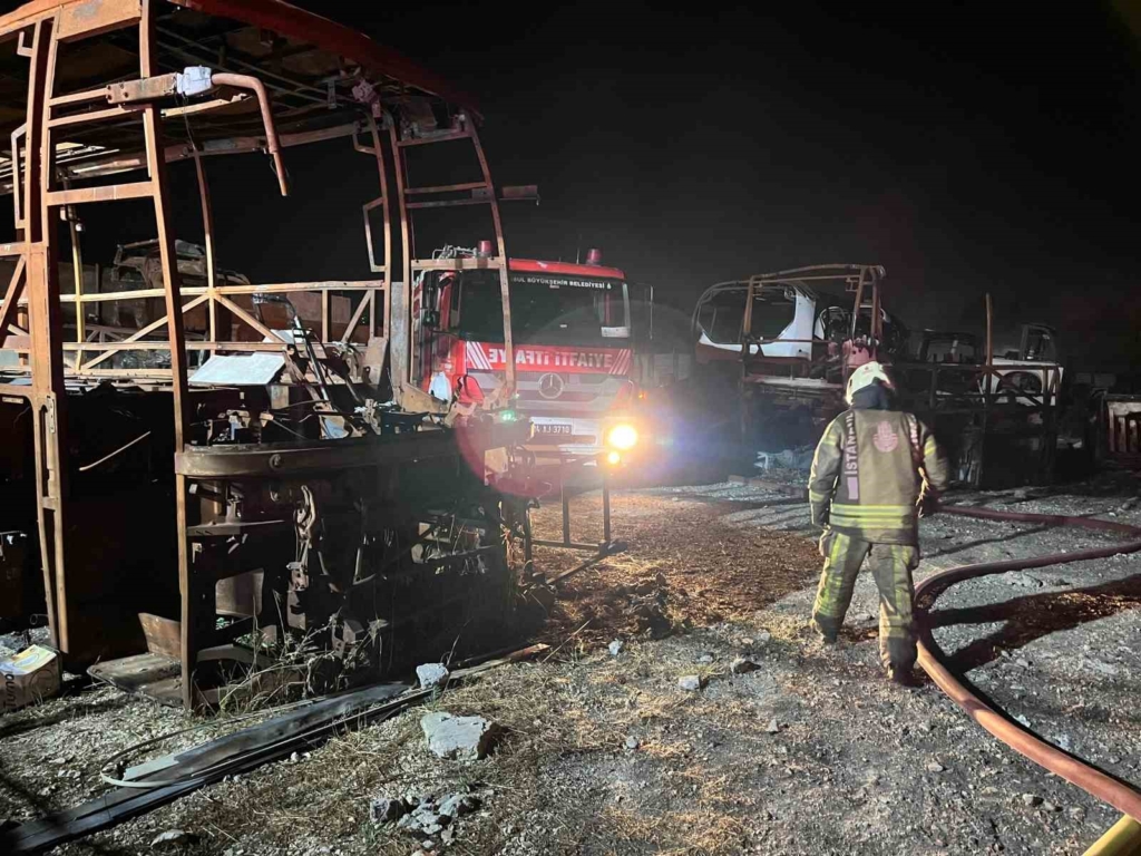 İstanbul Büyükçekmece’de, hurda otobüslerin bulunduğu alanda yangın çıktı. Kilometrelerce uzaklıktan görünen yangın otluk alana sirayet etmeden söndürüldü.