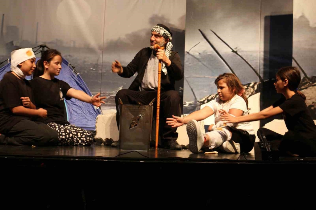 Selçuk Var’ın yazdığı ve Bülent Avcı ile yönetmenliğini üstlendiği oyunda Gazze’deki çocukların yaşadıkları dramı gözler önüne serdi. Oyunda, ilkokul öğrencileri ve öğretmenleri sahnede birlikte rol alırken izleyenlere duygusal anlar yaşattı. Rollerini büyük ustalıkla sergileyen öğrencilerin becerileri hayranlık bıraktı. Seyircilerin zor anlar yaşadığı oyunda acılar yüreklerde hissedildi.