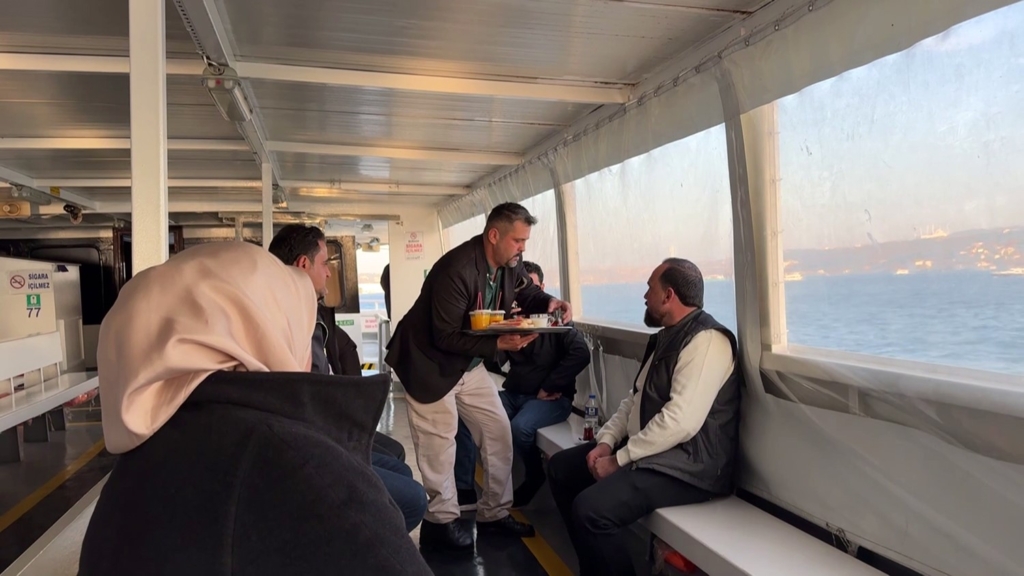 Eminönü İskelesi’nden her saat başı sefere çıkan tekneler 200 TL ücretle 1.5 saatlik boğaz turu yaptırıyor. Ayrıca çay 20, tost 50 ve meşrubatlarda değişik fiyatlarla müşterilere ikram ediliyor. Para toplamakta acele etmeyen neşeli garson İrfan Şensoy, “Hayatım neşe içerisinde geçiyor. İşimi severek yapıyorum. Her gün 3 tane boğaz turunda yüzlerce müşterimize servis veriyorum” dedi.