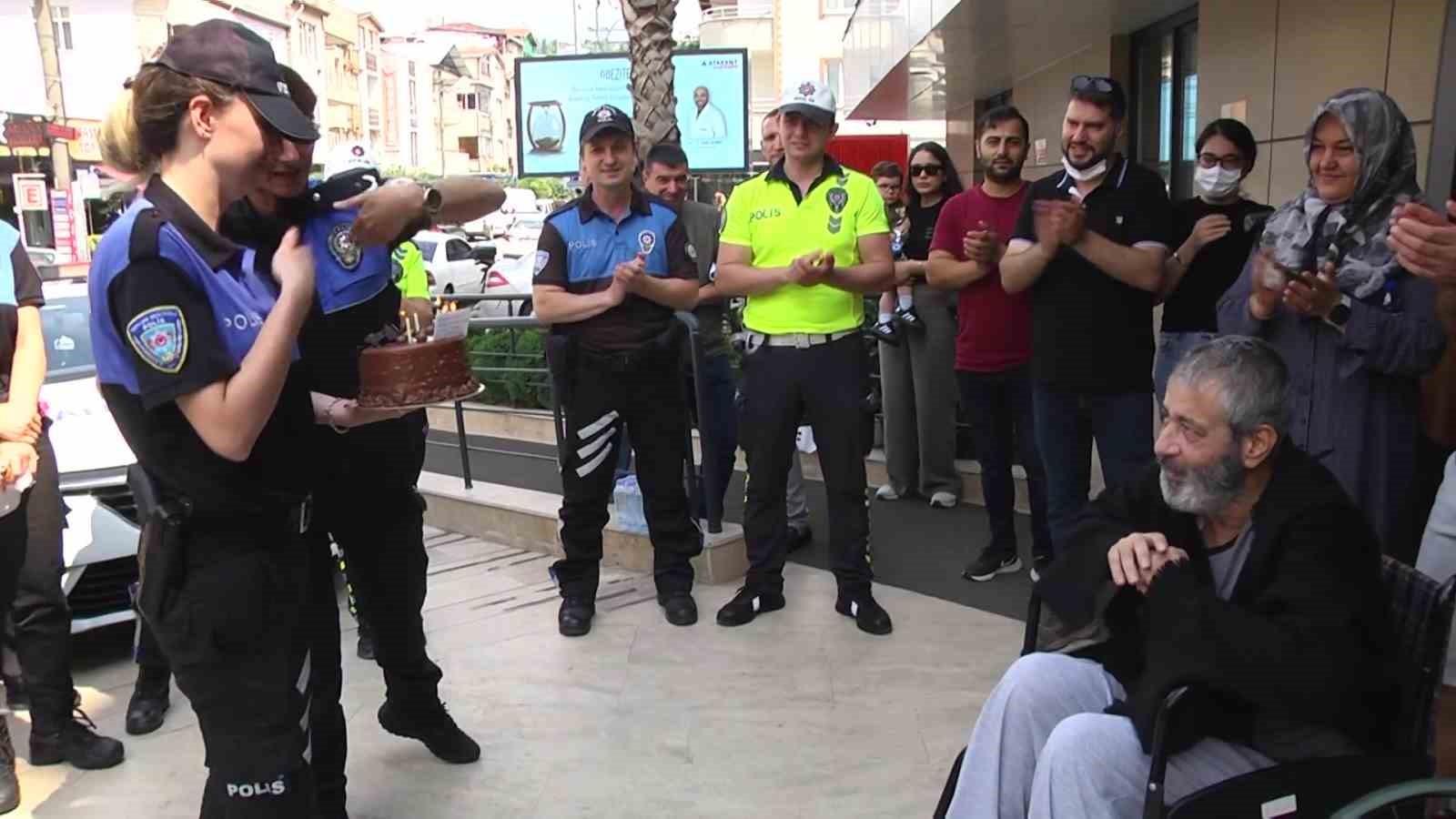 Kocaeli’de kolon kanseri tedavisi gören polis memuru Zafer Dursun’u mesai arkadaşları hastanede yalnız bırakmadı. Ellerinde pasta ile hastaneye gelen ekip, Dursun’un kısa sürede iyileşmesi dileğinde bulundu.