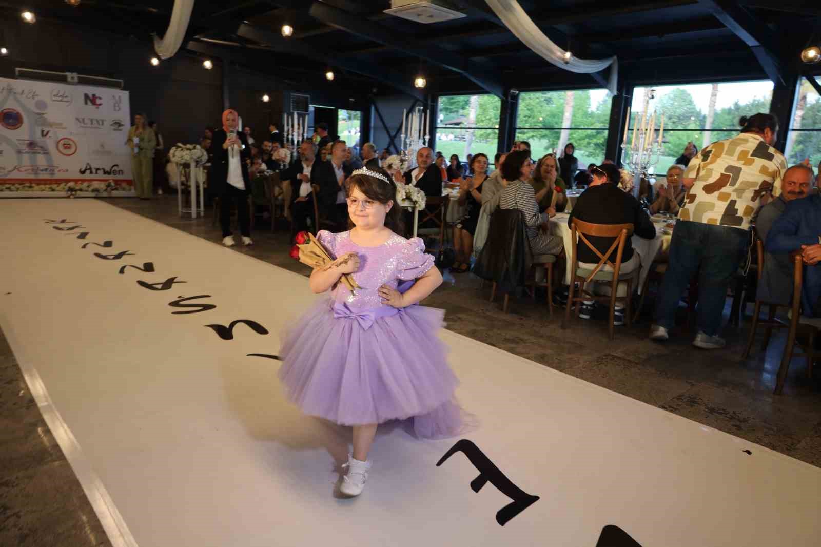 Podyumda ilk yürüyen isim anaokulu öğrencisi Gökçe Dora Işık oldu. Lila renkli kıyafetiyle podyumda yürüyen minik Gökçe, masalarda oturanlara çiçek de bıraktı. 6 yaşındaki Gökçe, izleyenler tarafından alkışlandı.