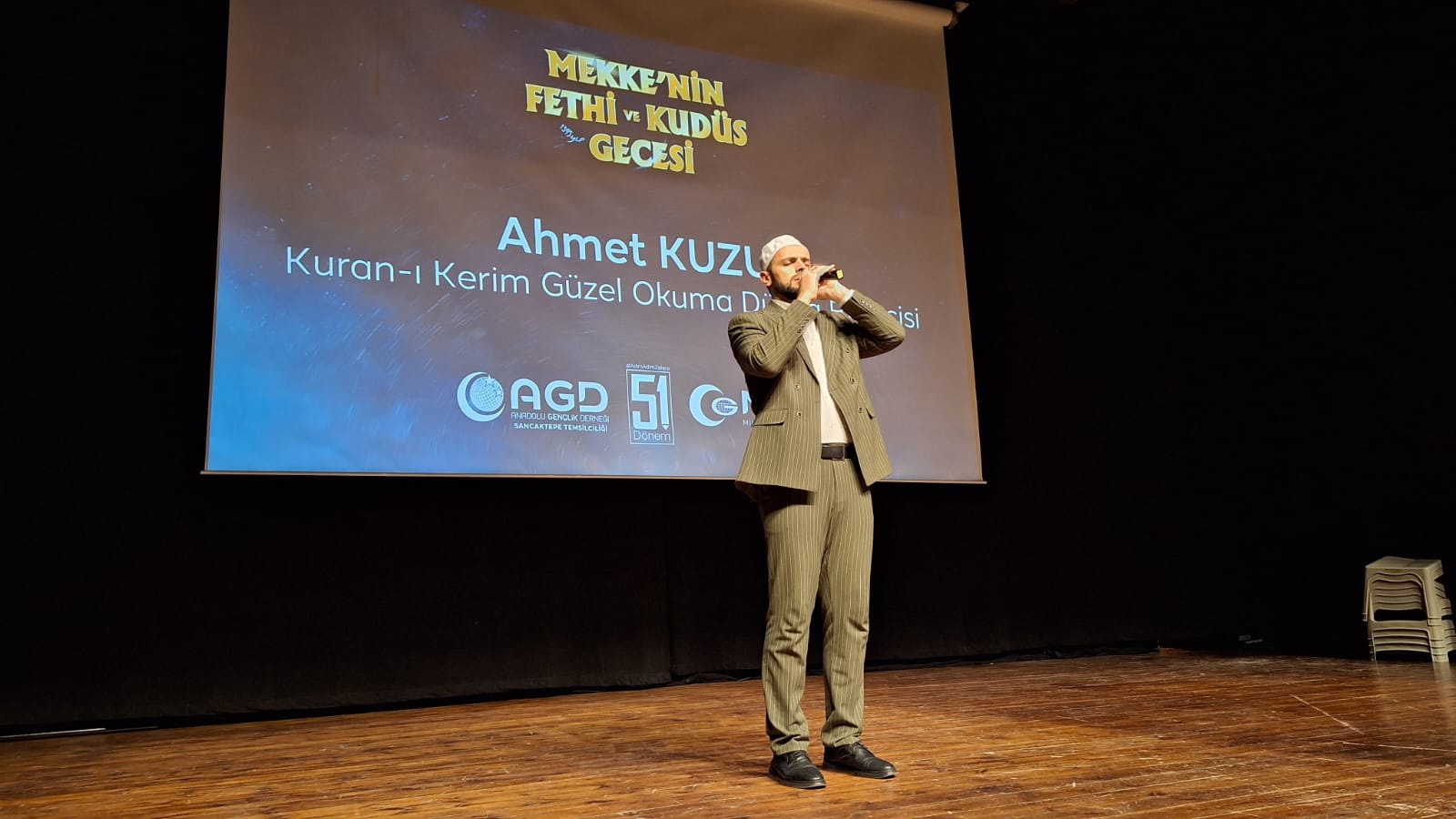 Anadolu Gençlik Derneği Sancaktepe Şubesi tarafından İBB Sancaktepe Eyüp Sultan Merkezi’nde düzenlenen “Mekke’nin Fethinin 1395. Yılı ve Kudüs Gecesi” programı; Kur’an-ı Kerim tilavetleri, anlamlı konuşmalar, tiyatro gösterisi ve ney dinletisiyle katılımcılara duygu dolu anlar yaşattı.
