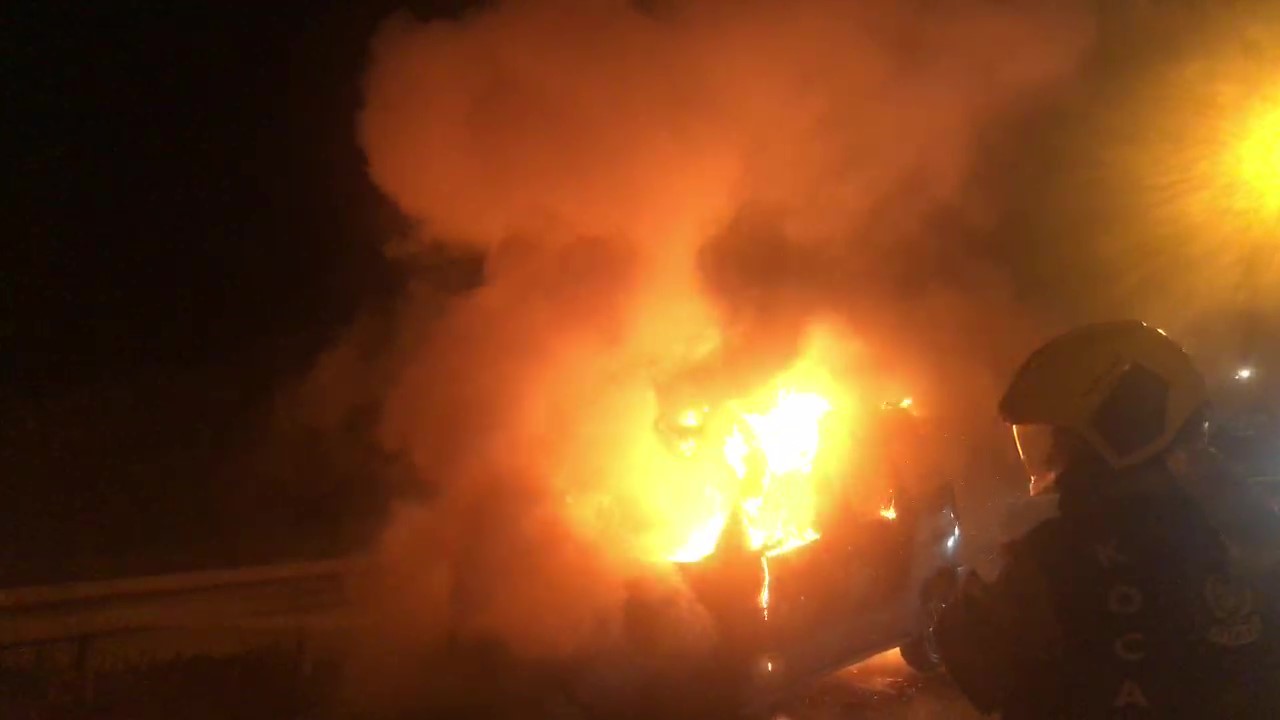 Kocaeli TEM Otoyolu Karayolu’nda seyir halinde olan araç alev topuna döndü. Sürücünün ihbarı üzerine olay yerine gelen itfaiye ekiplerince yangın söndürülürken, araç hurdaya döndü.