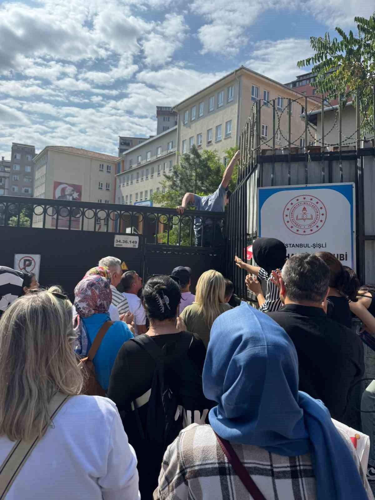 Yükseköğretim Kurumları Sınavı’nın (YKS) birinci oturumuna iddiaya göre 1 dakika geç kaldıkları için alınmayan gençler, Şişli Selahattin Eyyubi Ortaokulu’nun duvarından atlayarak sınava girmeye çalıştı. Görevliler tarafından dışarıya çıkarılan gençlerin o anları cep telefonu kamerasına yansıdı.
