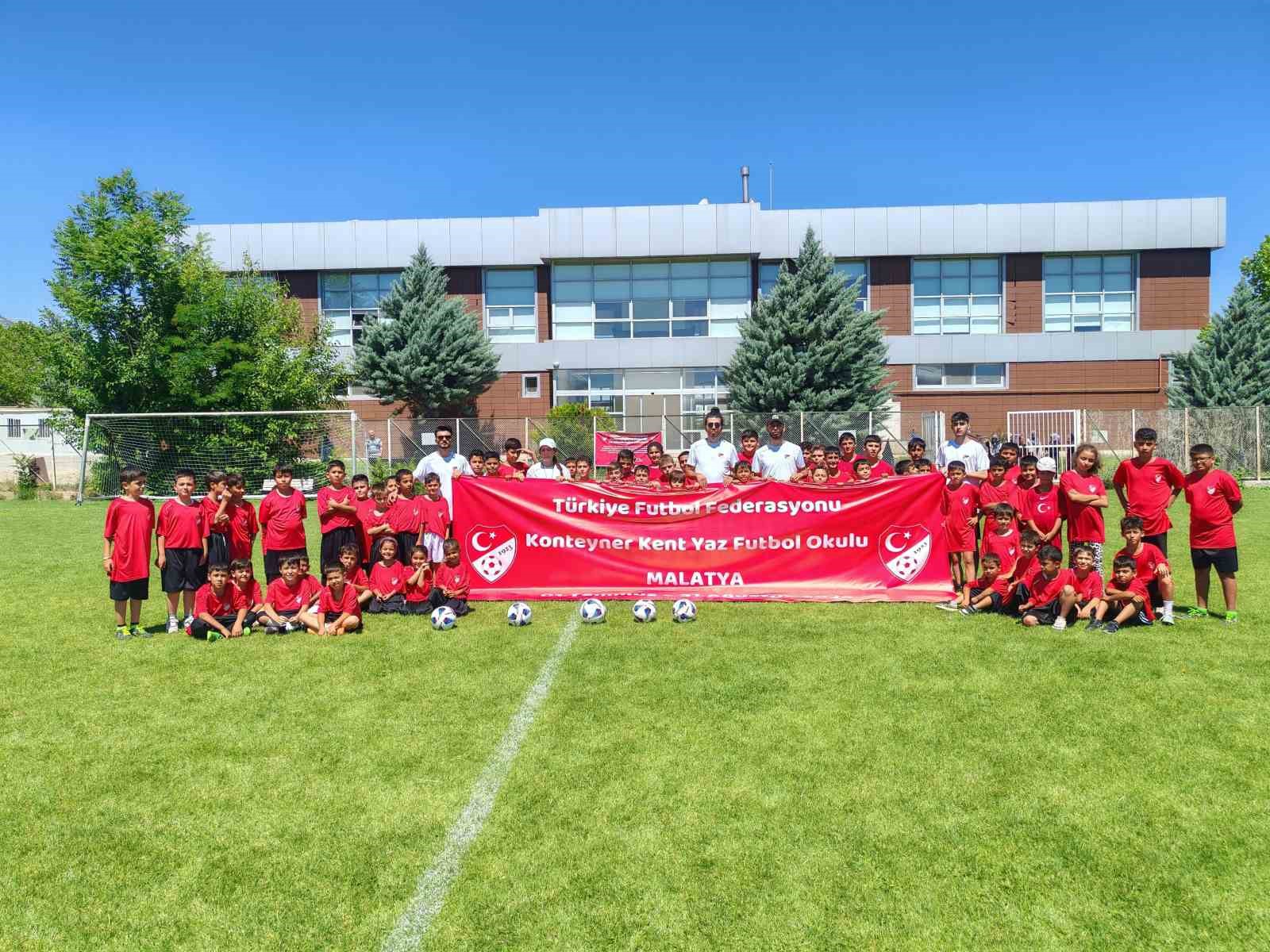Türkiye Futbol Federasyonu Malatya Bölge Temsilciliği’nin koordinasyonunda konteyner evlerde yaşayan 6-12 yaş grubu kız ve erkek çocuklar için futbol okulu düzenleniyor. Gönüllü antrenör ve personelin desteği ile 1 Temmuz-31 Temmuz ve 1 Ağustos-31 Ağustos tarihleri arasında iki dönem olarak düzenlenen okulda çocukların hem eğitilmesi hem de futbol oynayarak keyifli zamanlar geçirmesi hedefleniyor. Pazartesi ve çarşamba günleri 09.00-10.30 saatleri arasında gerçekleştirilen etkinliklerde basit beceri parkurları, eğitsel oyunlar ile 4’e 4 ve 5’e 5 müsabakaların gerçekleştirildiği saha uygulamaları yapılıyor.