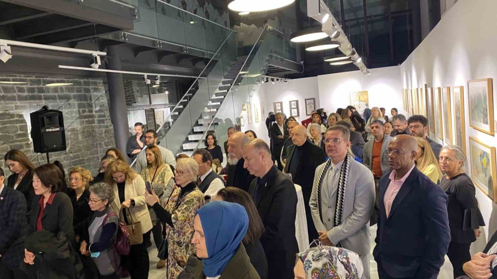 Sergide konuşmacıların da söz almaları sonrası gelen katılımcılar sergilenen eserler arasında dolaşarak incelemelerde bulundu.