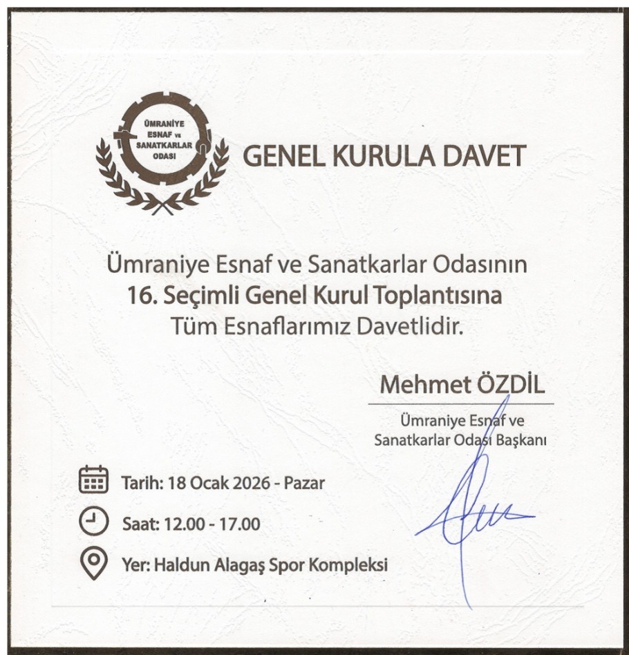 Ümraniye Esnaf ve Sanatkârlar Odası Seçimli Genel Kurul Toplantısı’nda yeni dönemin yol haritasının belirlenmesi bekleniyor.