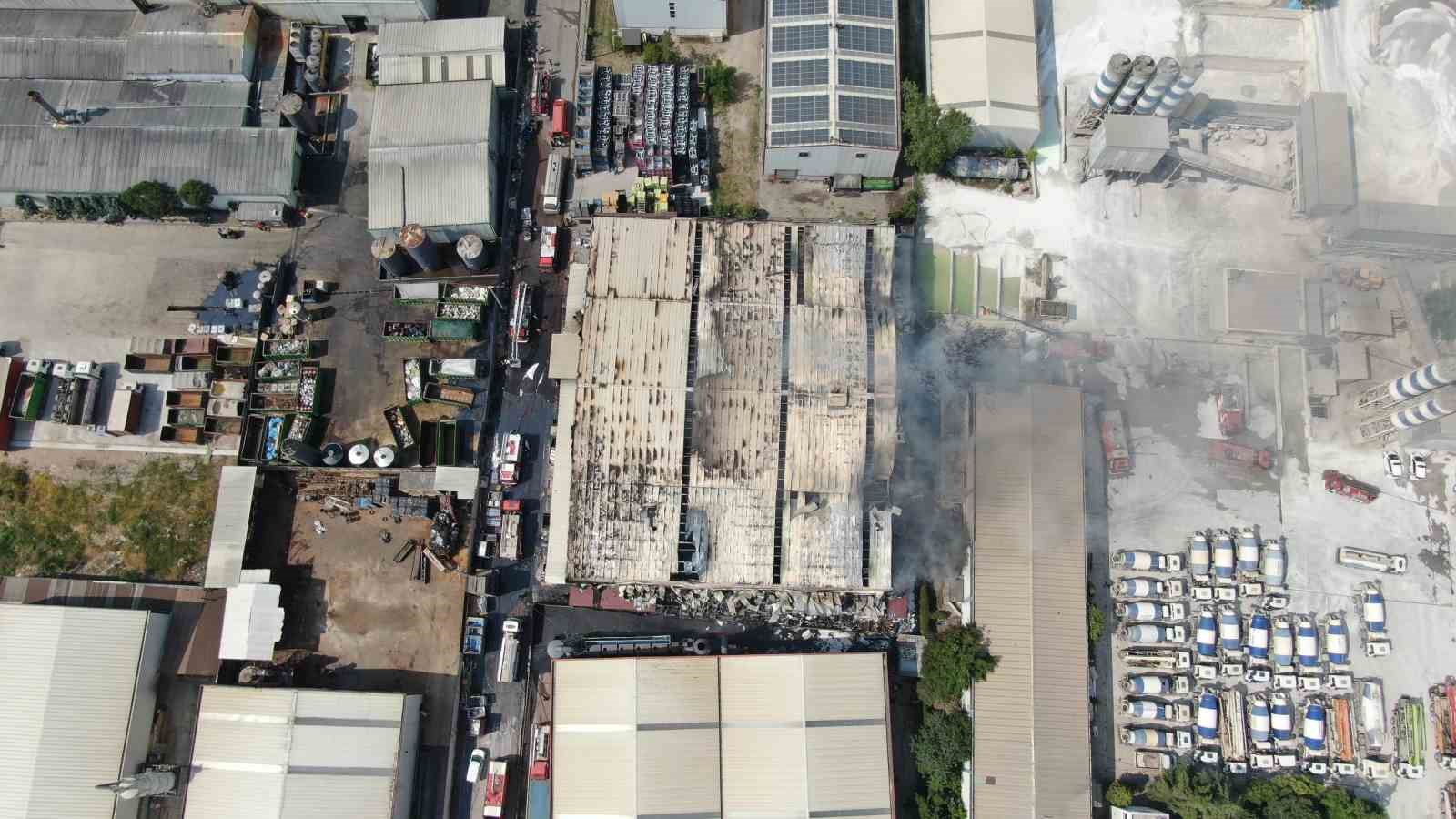 Yanan fabrika havadan görüntülendi. Polis olayla ilgili inceleme başlattı.